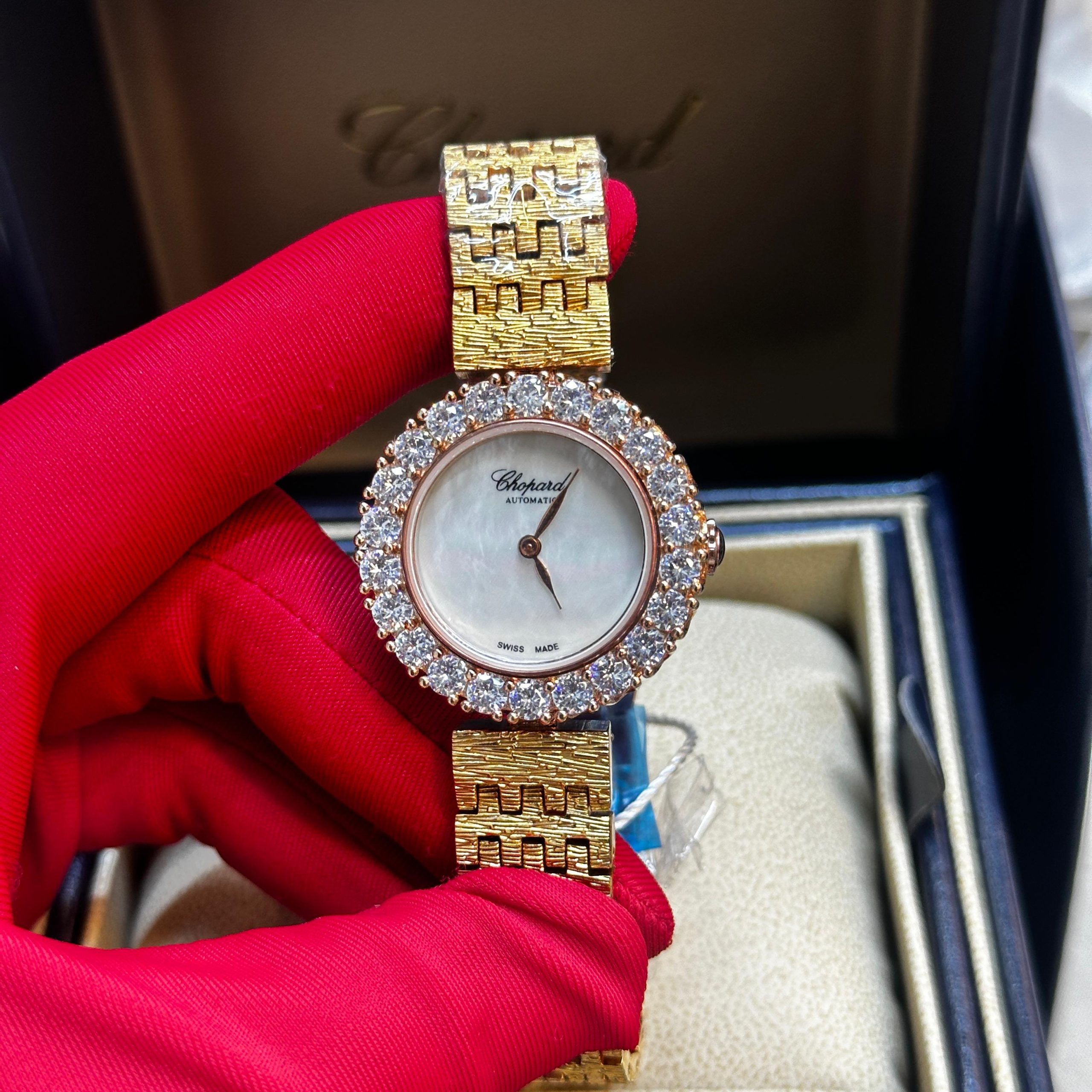 Chopard Diamond Bezel Ladies Watch With White Mother-of-Pearl Dial in Gold