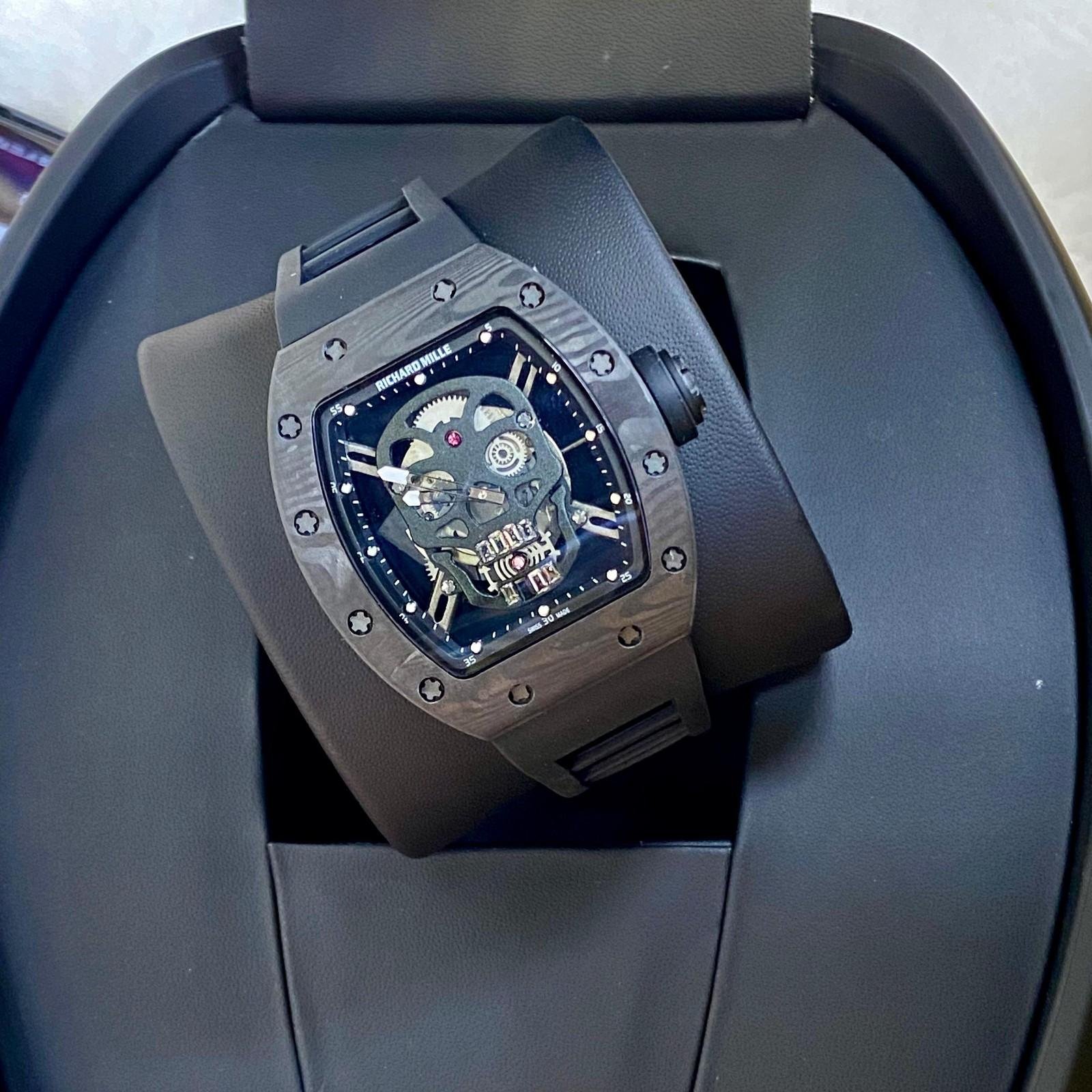 Richard Mille Skull RM 052 Skeleton Skull Dial Rose Gold Case Tourbillon Mans Watch– Rubber Strap