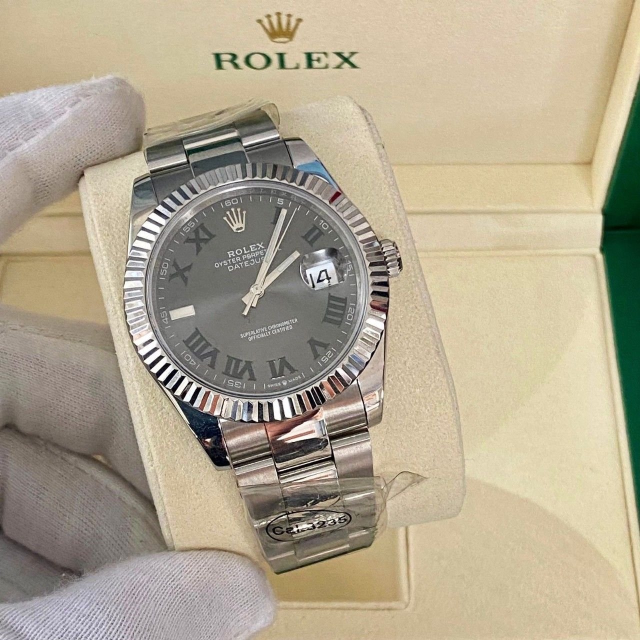 Rolex Datejust 41 White Gold Grey Slate Wimbledon Green Roman Dial Oyster Bracelet Replica Mans Watch