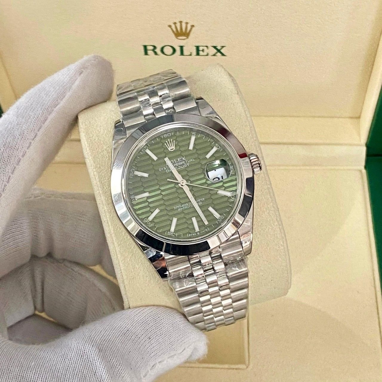 Rolex Datejust 41mm Green Fluted Dial Jubilee Stainless Steel Replica Mans Watch-126300-0022