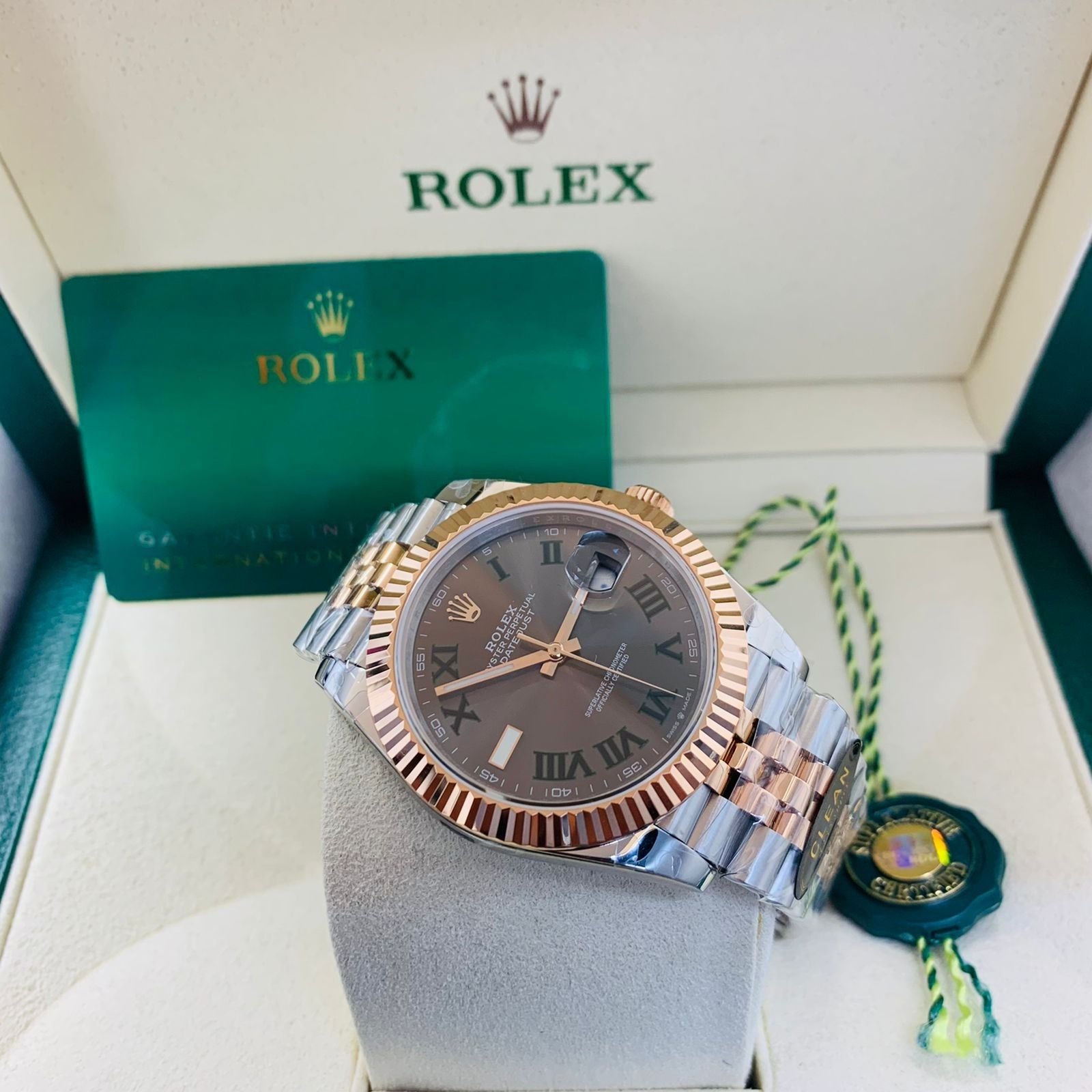 Rolex Datejust 41mm Rose Gold & Steel Wimbledon Slate Dial Jubilee Fluted Bezel Replica Mans Watch-126331-0016