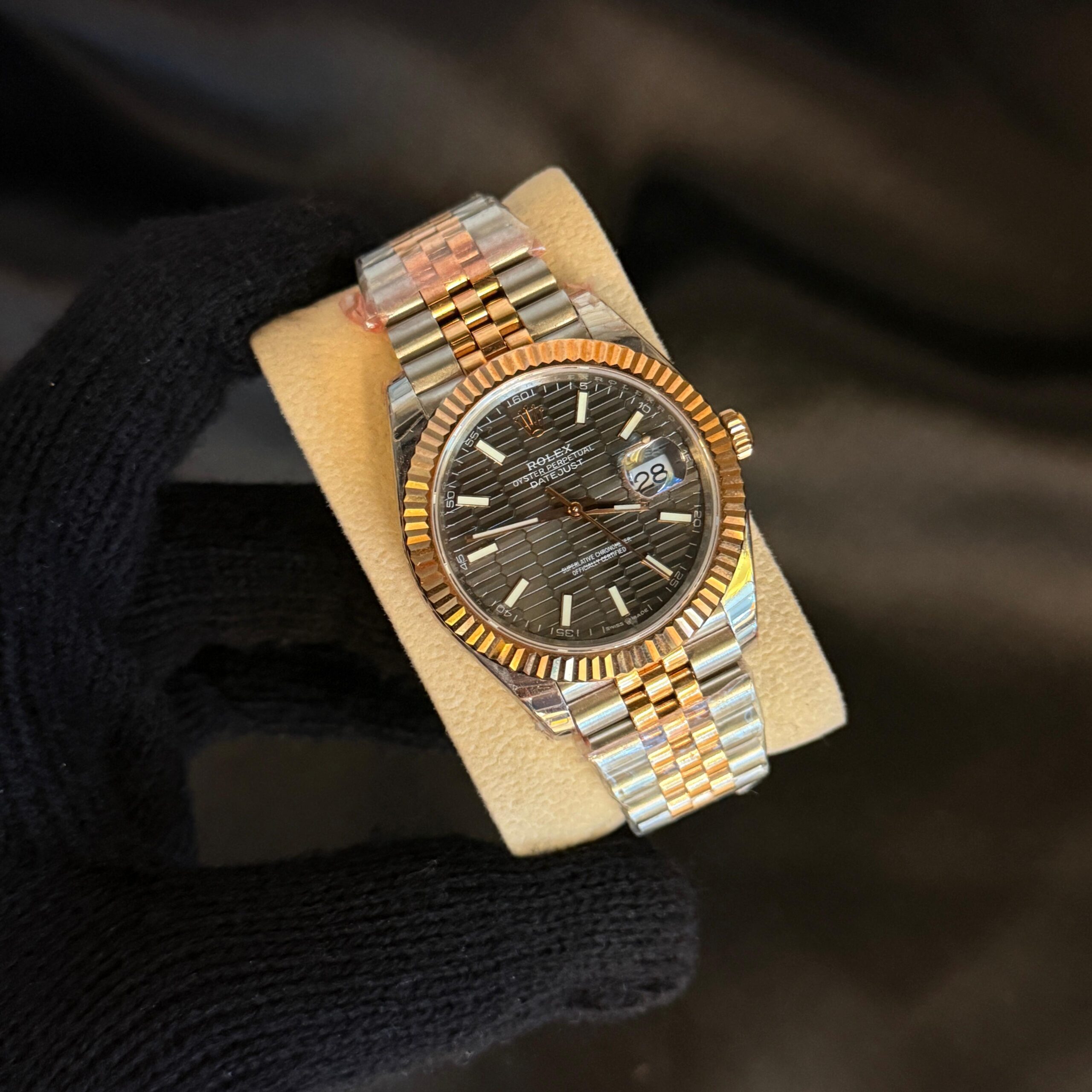 Rolex Datejust 41mm Slate Gray Motif Dial Two Tone Rose Gold Steel Jubilee Watch