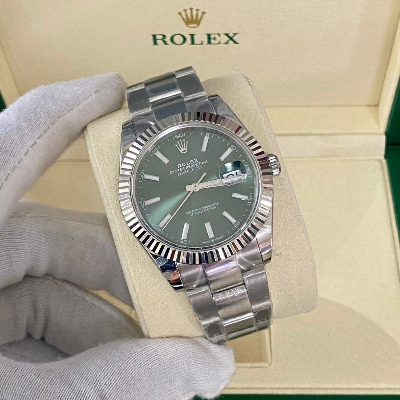 Rolex Datejust 41mm Stainless Steel Mint Green Dial Oyster Bracelet Replica Mans Watch-126334-0027