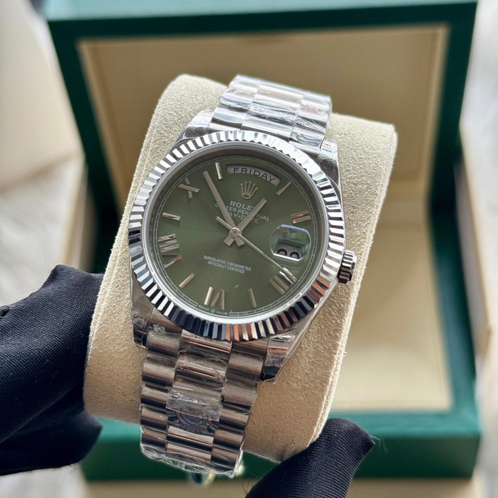Rolex Day-Date 228239-0033 White Gold Olive Green Roman Dial 40mm Replica Mens Watch
