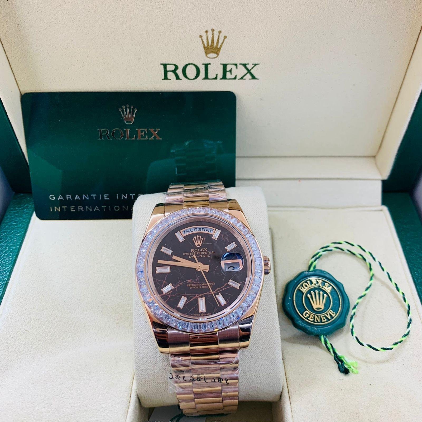 Rolex Day-Date 40mm Rose Gold Eisenkiesel Diamond Dial Diamond Bezel Replica Mens Watch-228345RBR-0016