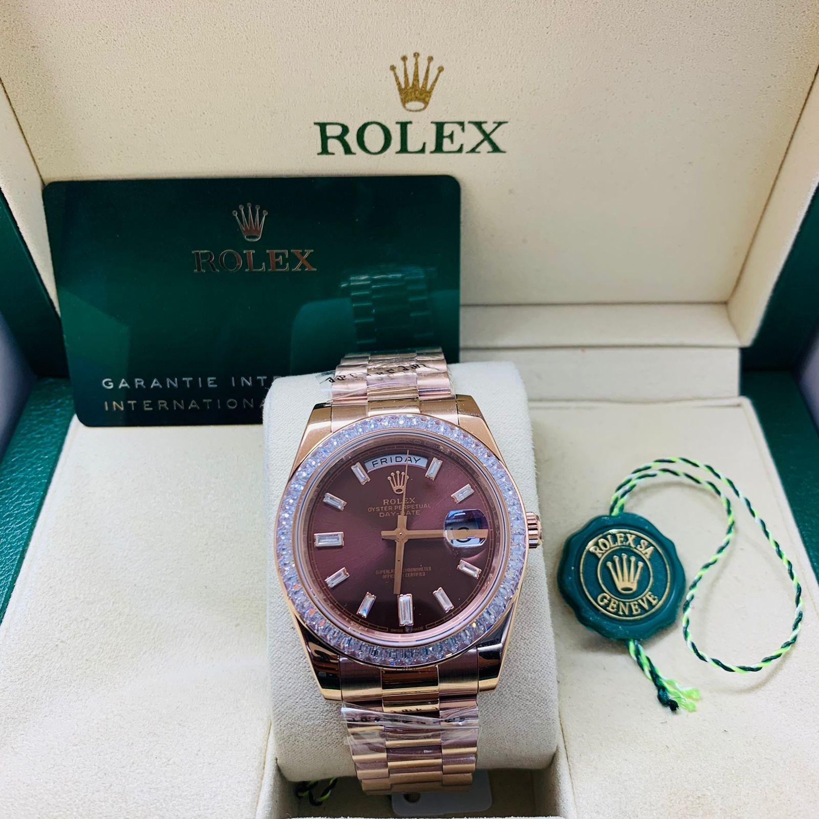 Rolex Day-Date 40mm Rose Gold President Bracelet Chocolate Diamond Dial Diamond Bezel Replica Mens Watch